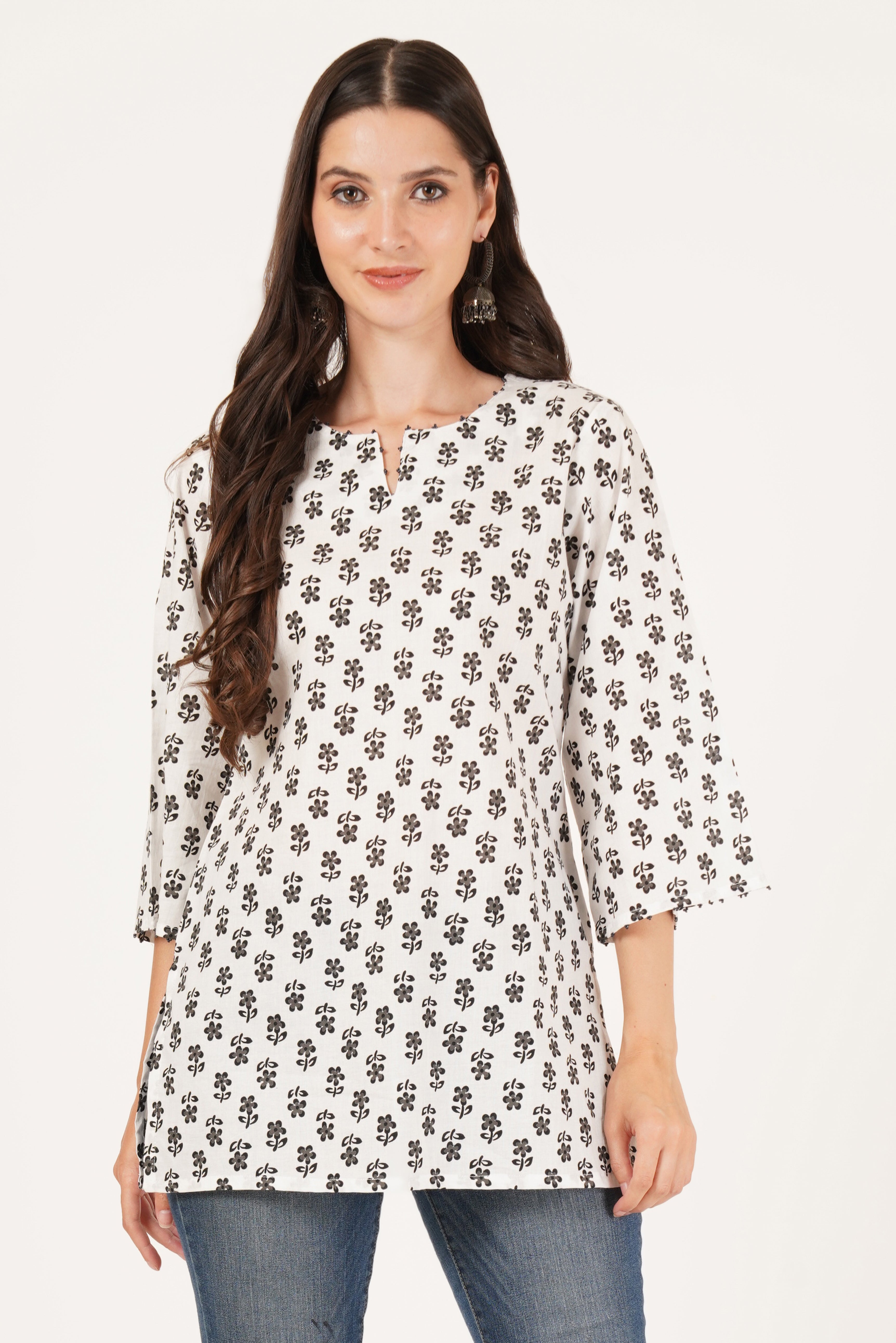 Klassisches schwarz-weiß bedrucktes kurzes Kurti für Damen