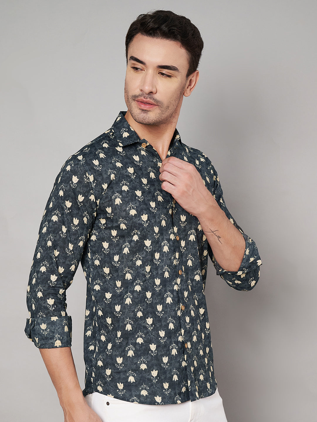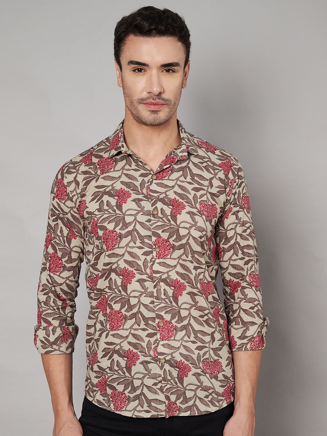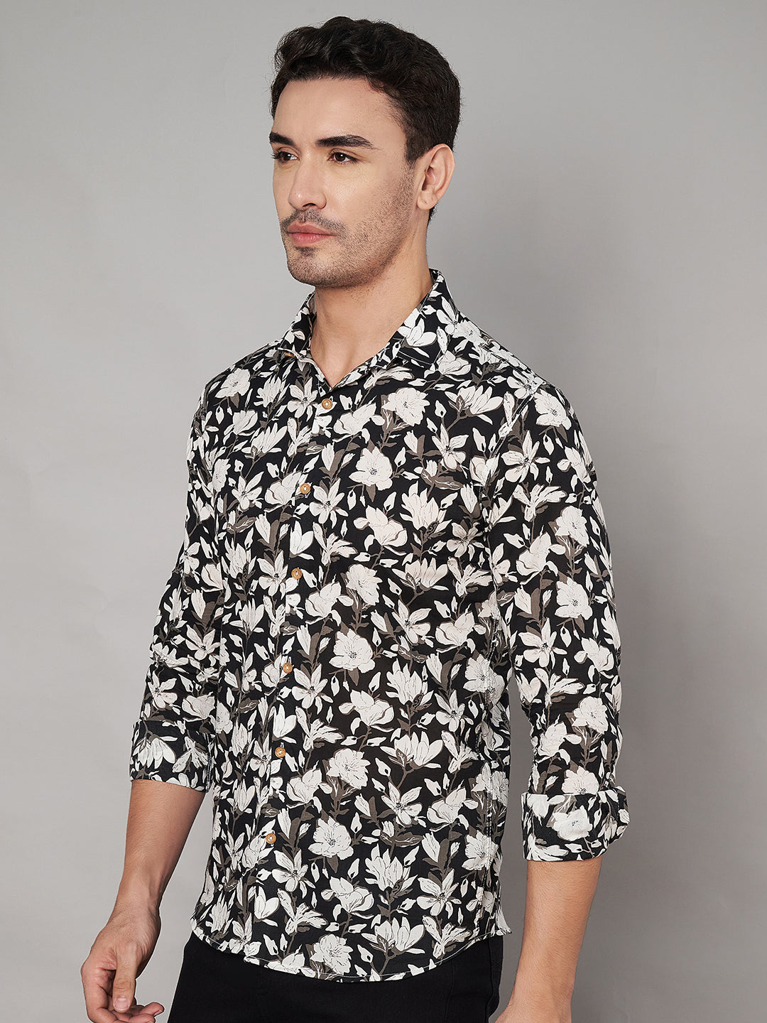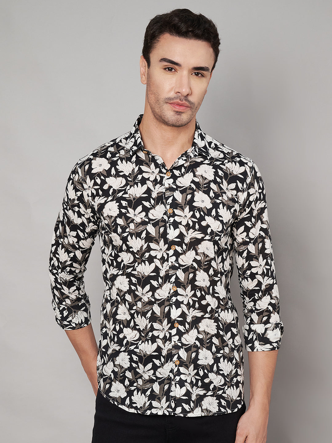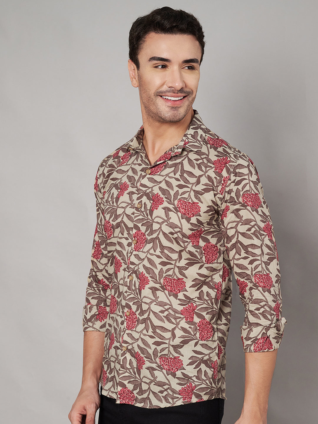 Chemise à manches longues en pur coton à imprimé floral pour homme