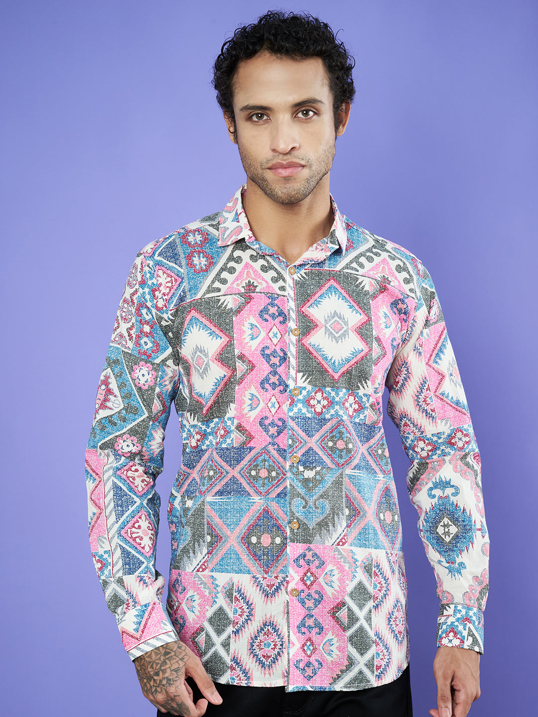Chemise en coton à manches longues vibrante du Rajasthan pour hommes