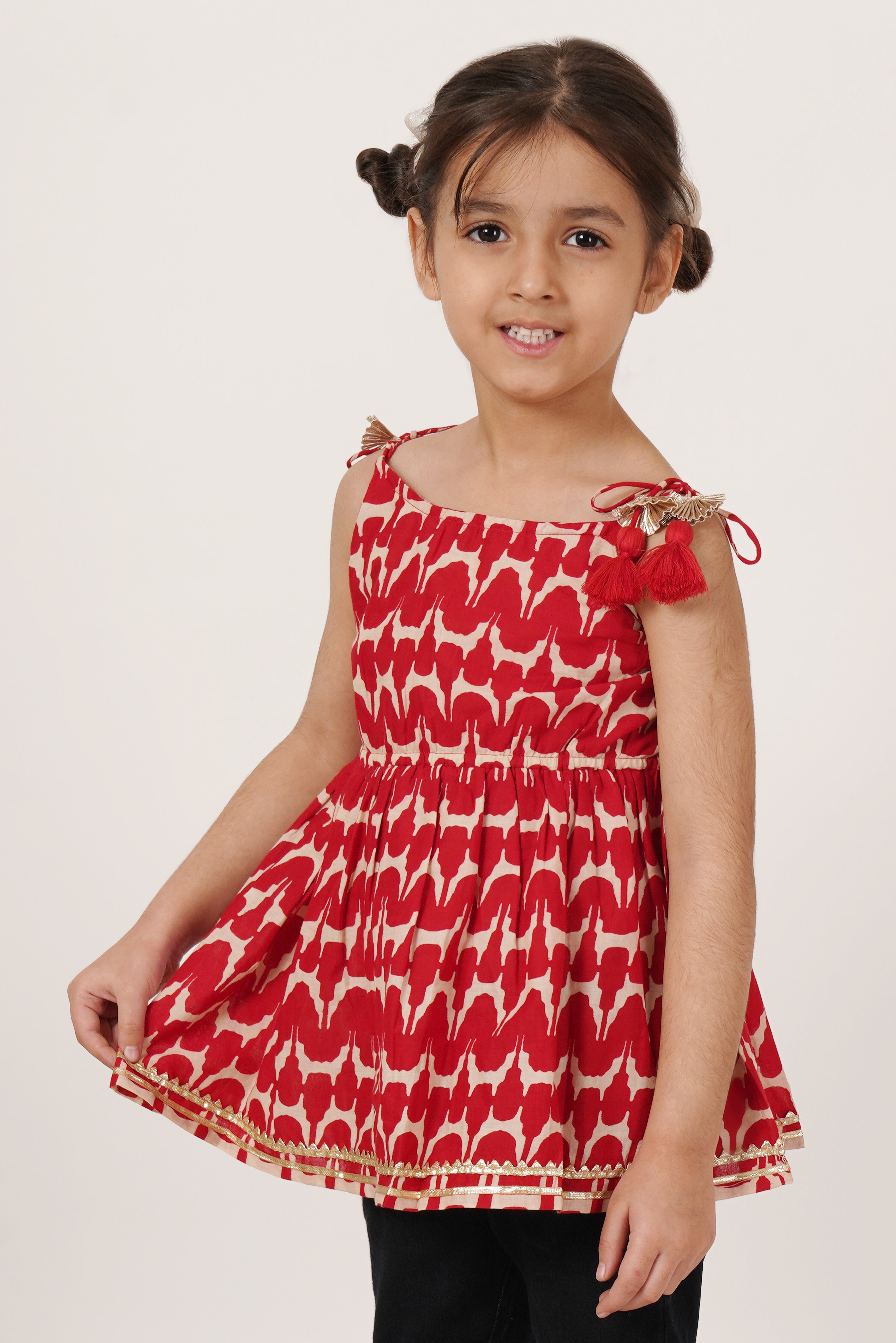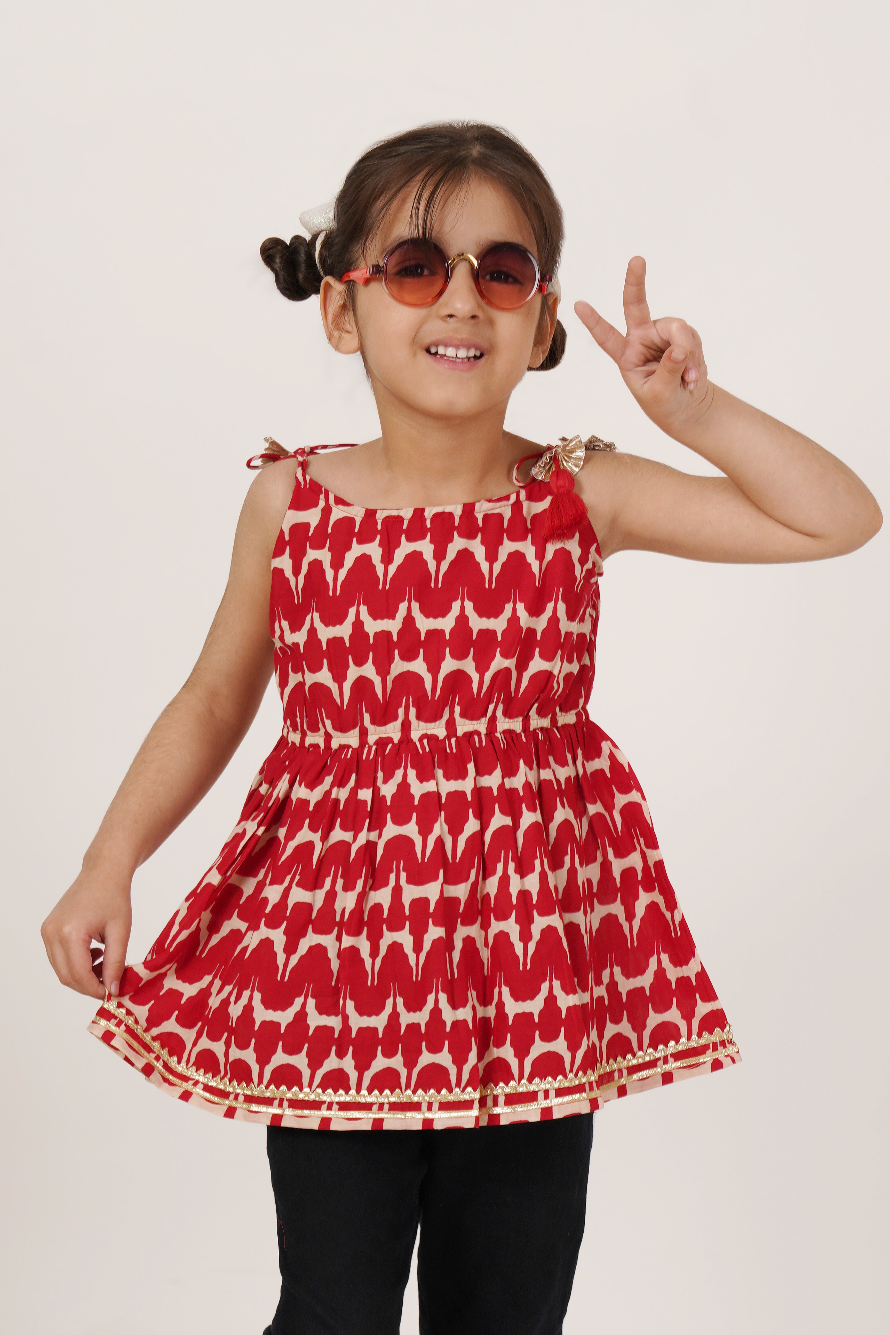 Haut sans manches en coton imprimé Jaipuri pour filles