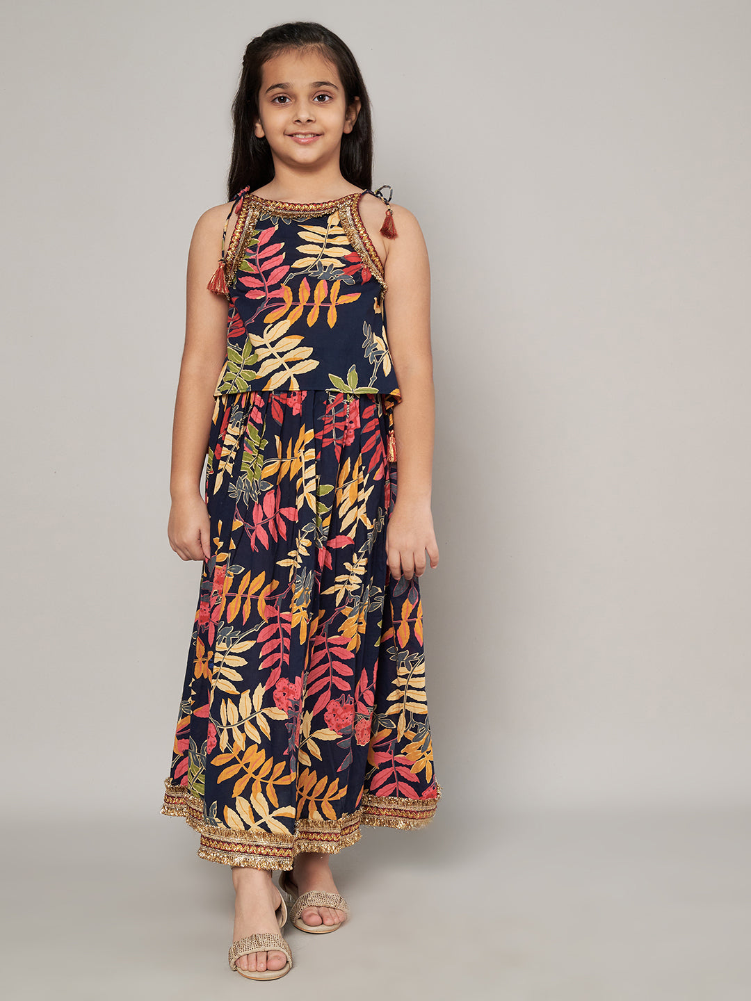 Haut élégant à coupe Alia avec jupe imprimée pour filles