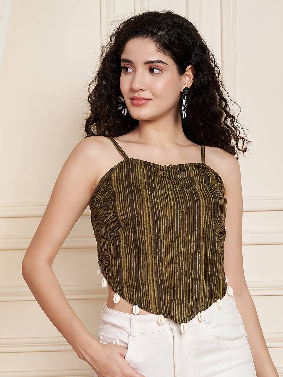 Haut en coton à imprimé ikat à bretelles avec ceinture pour femme